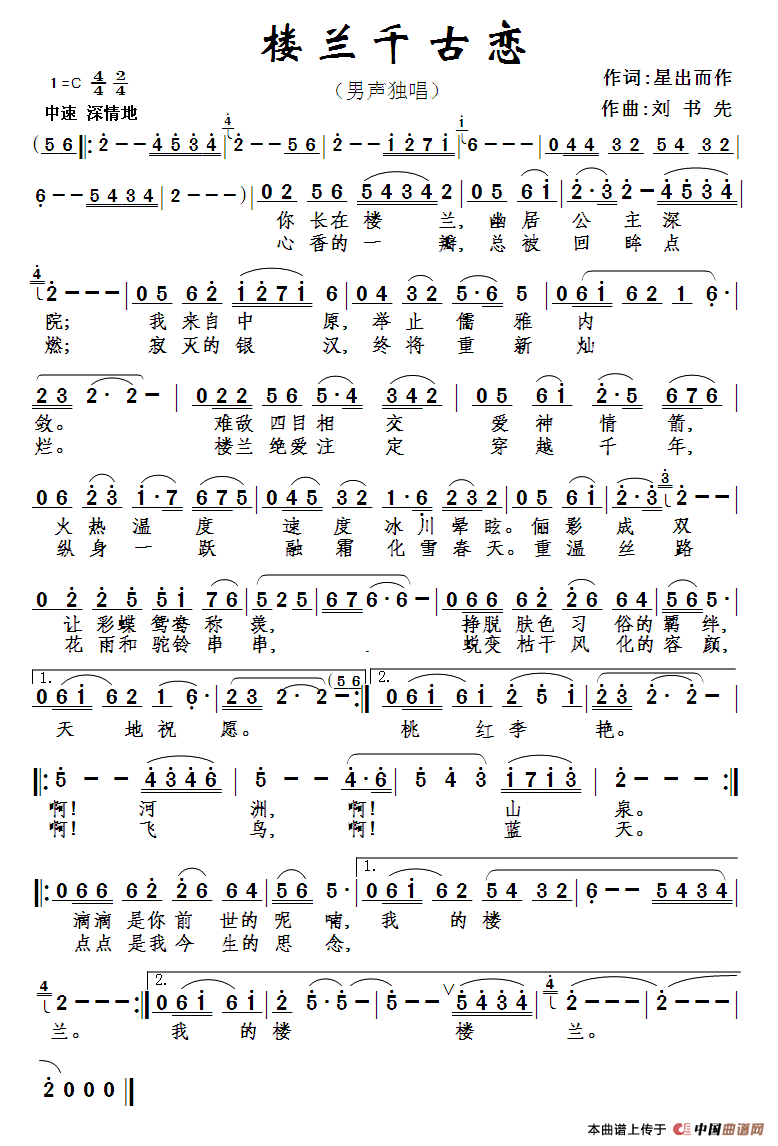 致谢:《中国曲谱网》衷心感谢词作者老师馈赠原版歌谱!