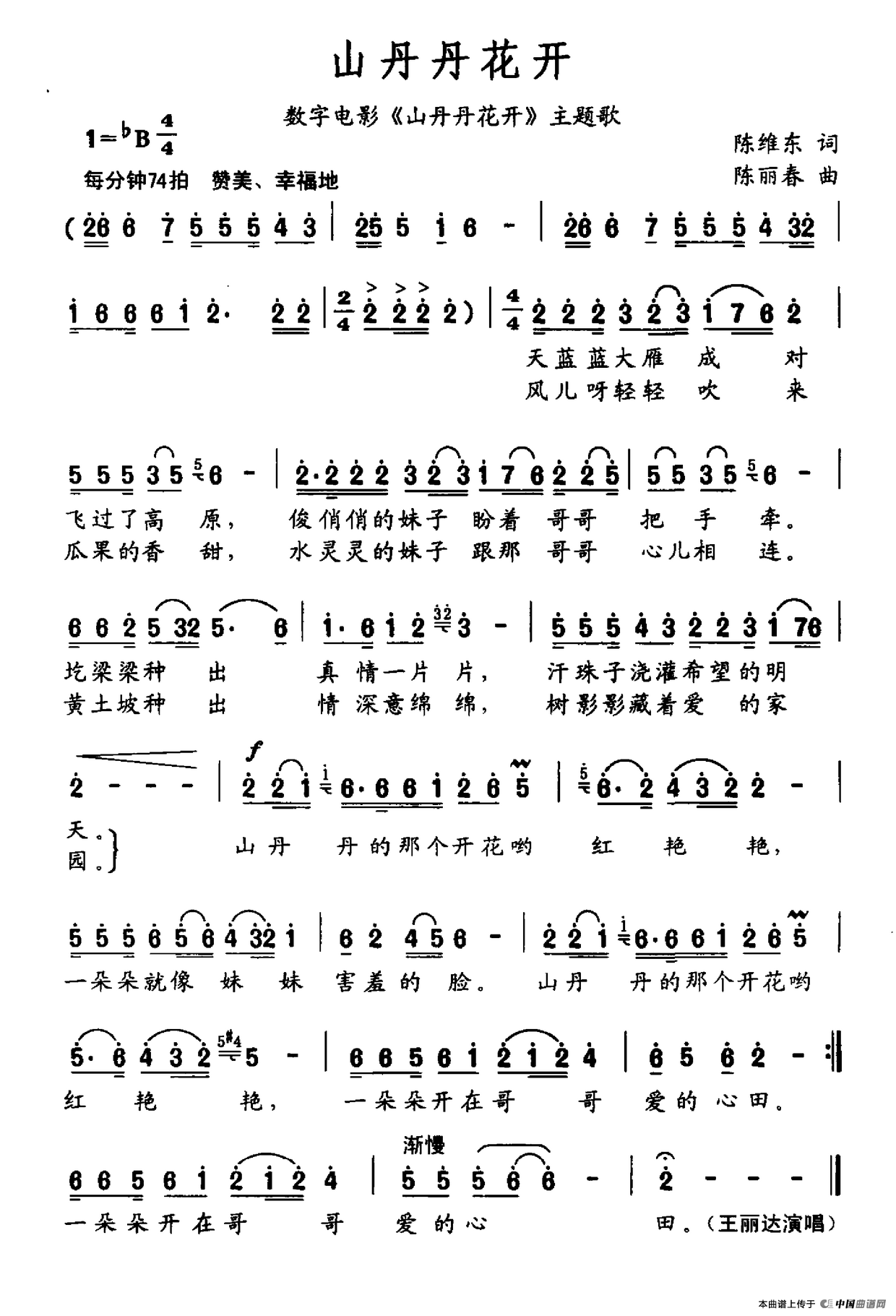 关于《山丹丹花开》曲谱的评论