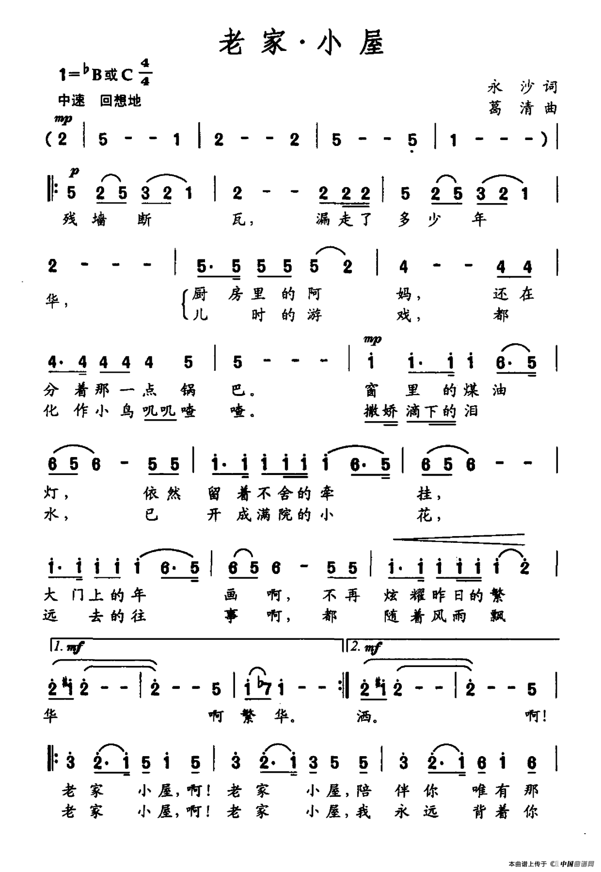 关于《老家·小屋》曲谱的评论