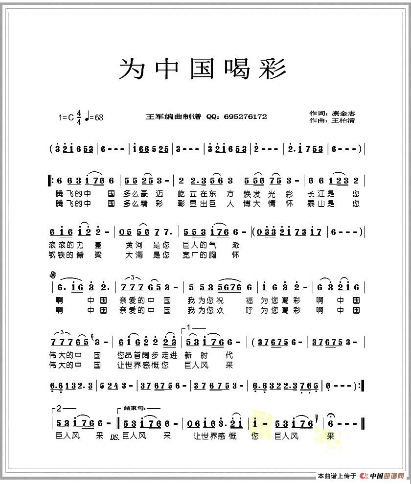 提示:在曲谱图片上单击右键,选择“图片另存为...”即可将曲谱保存到您的电脑中,打印时候可将图片插入到WORD中,调整合适大小打印即可。