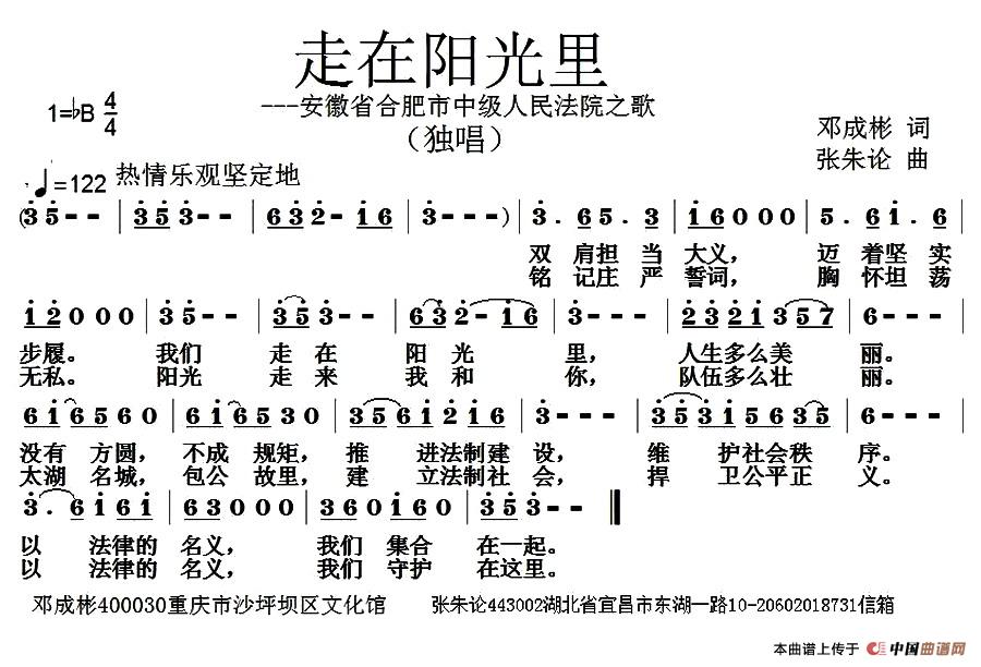 关于《走在阳光里》曲谱的评论