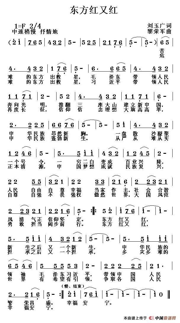 关于《东方红又红》曲谱的评论