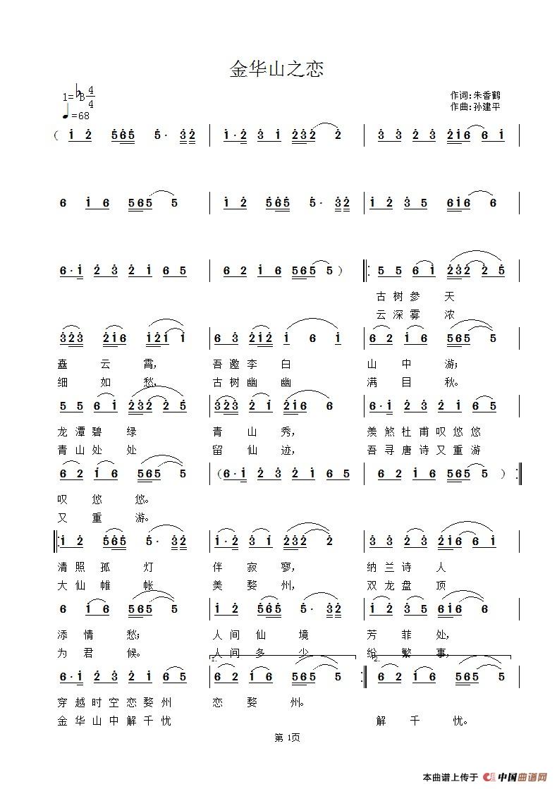 致谢:《中国曲谱网》衷心感谢作者老师馈赠原版歌谱!