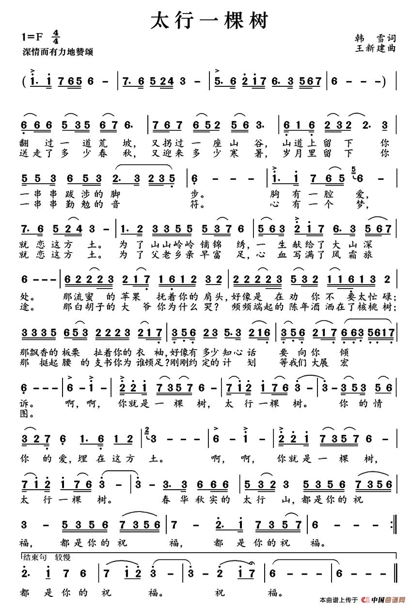 关于《太行一棵树》曲谱的评论