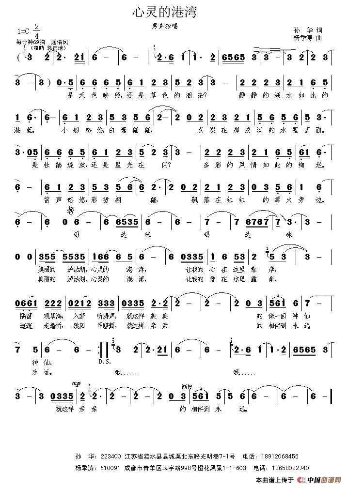 致谢:《中国曲谱网》衷心感谢作者老师馈赠原版歌谱!