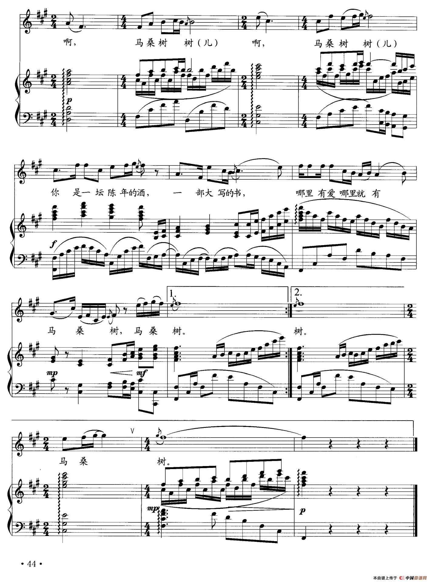 关于《青青马桑树》曲谱的评论