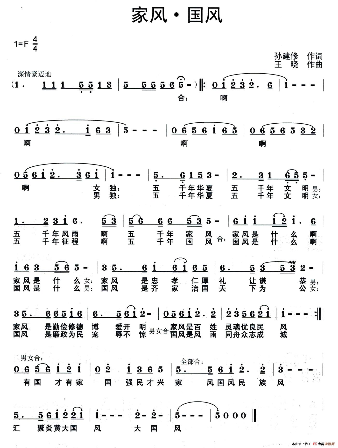 关于《家风·国风》曲谱的评论