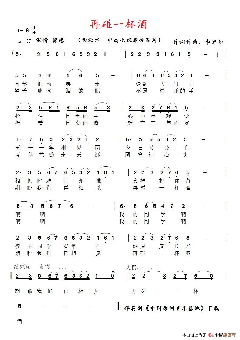 关于《再碰一杯酒》曲谱的评论