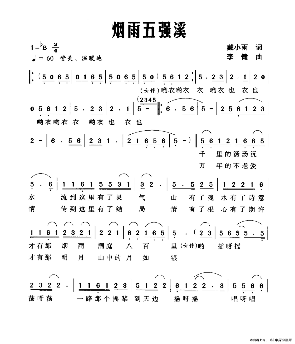 关于《烟雨五强溪》曲谱的评论
