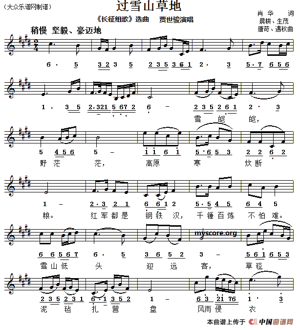 长征组歌《红军不怕远征难》之六,独唱部分。