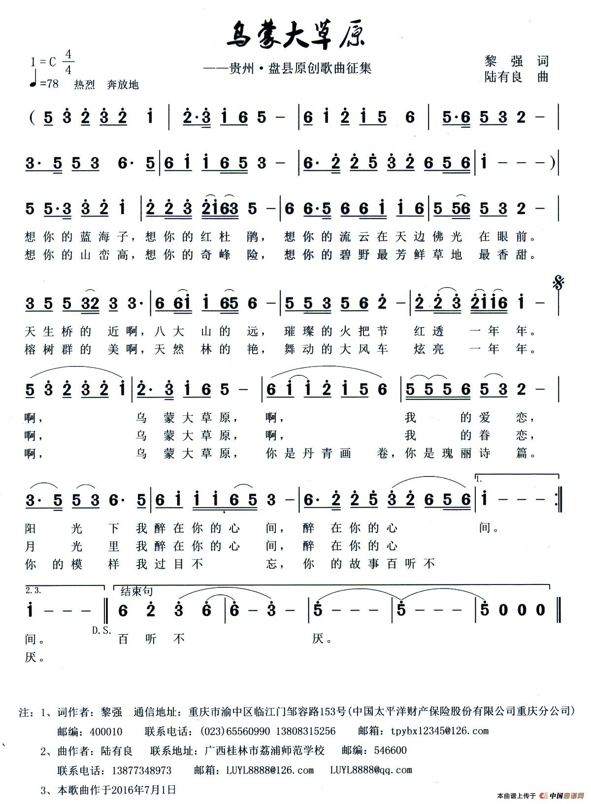 关于《乌蒙大草原》曲谱的评论