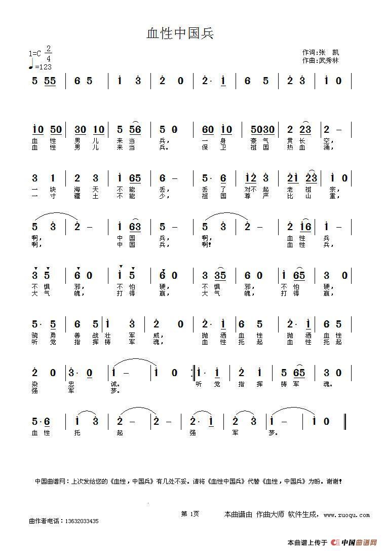 关于《血性中国兵》曲谱的评论