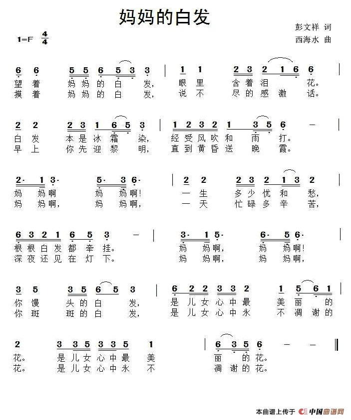 关于《妈妈的白发》曲谱的评论