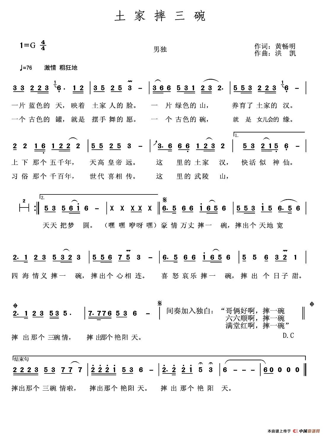 关于《土家摔三碗》曲谱的评论