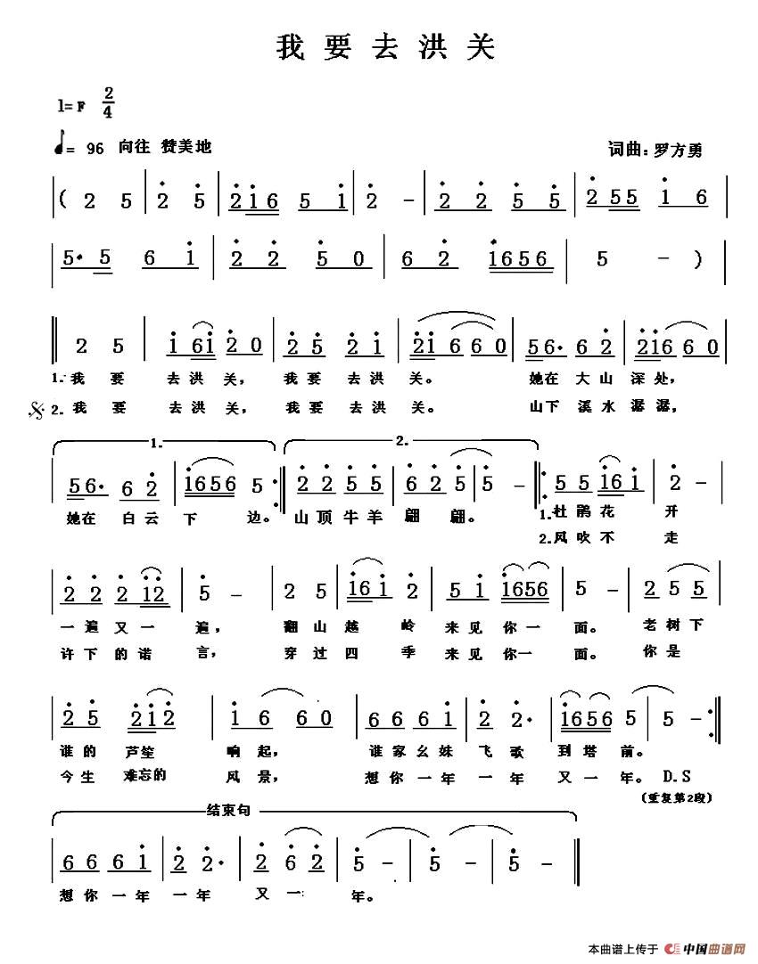 关于《我要去洪关 》曲谱的评论