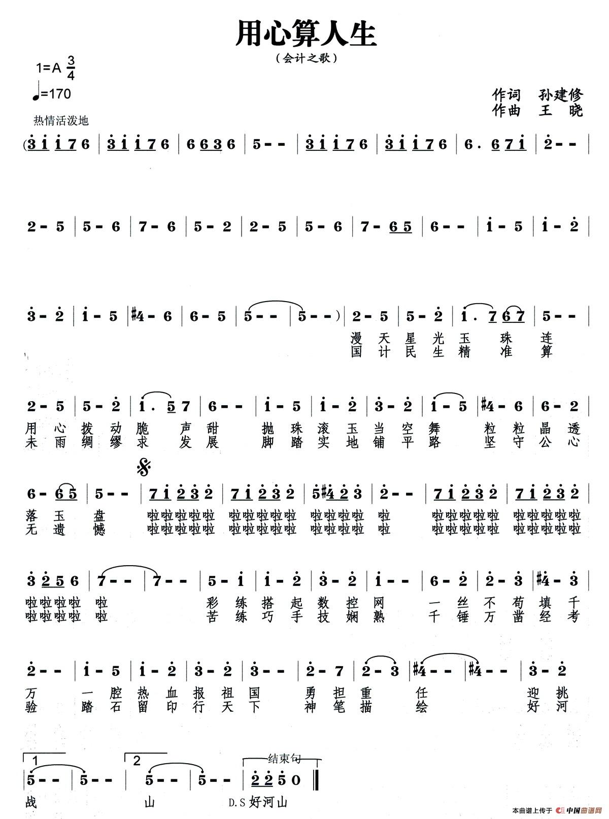 致谢:《中国曲谱网》衷心感谢作者老师馈赠原版歌谱!