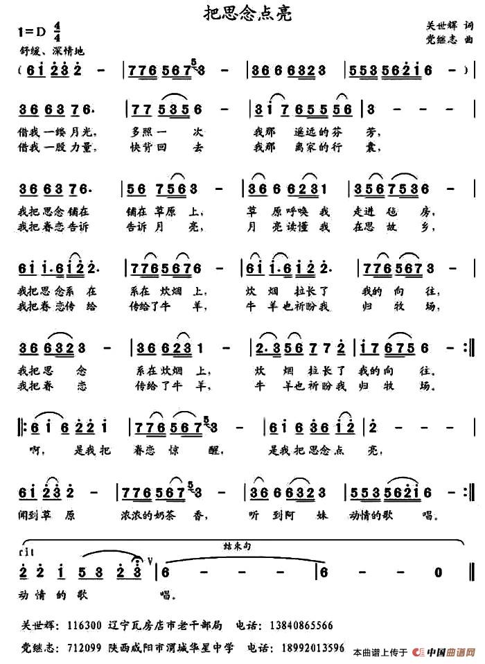 关于《把思恋点亮》曲谱的评论