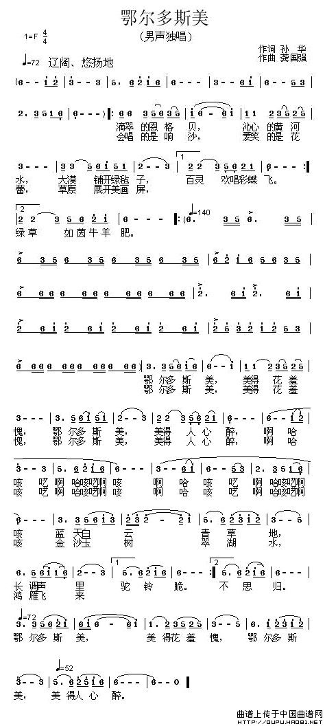 致谢:《中国曲谱网》衷心感谢作者老师馈赠原版歌谱!