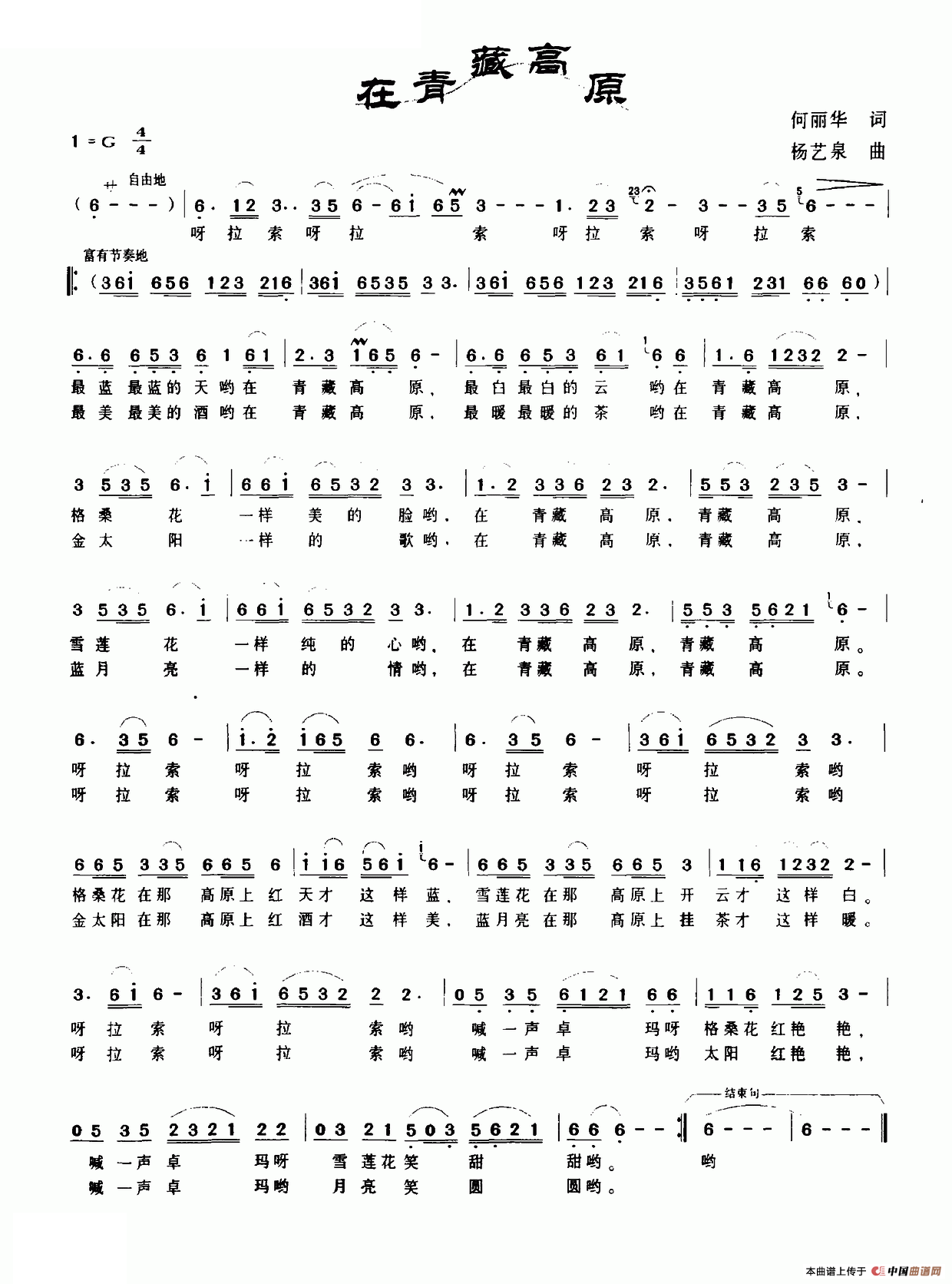 《在青藏高原》文本歌词