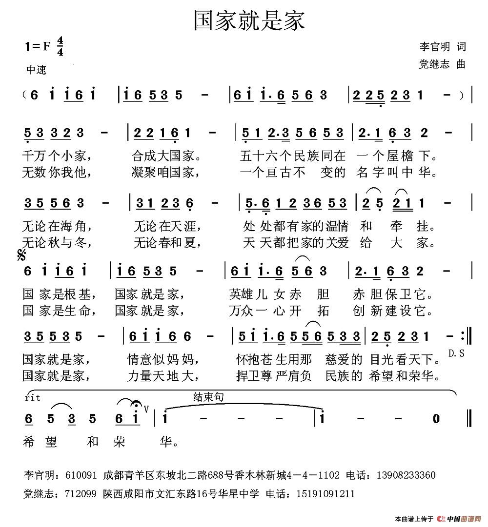 关于《国家就是家 》曲谱的评论