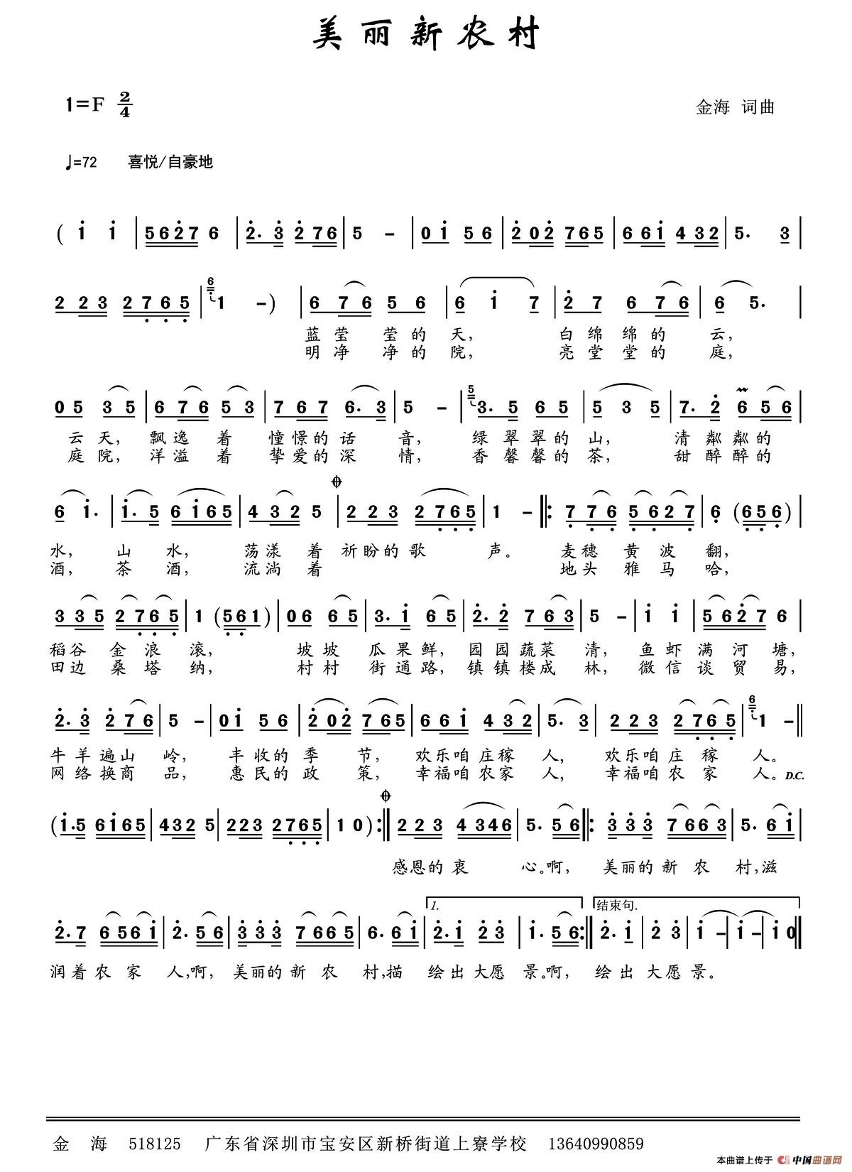 关于《美丽新农村 》曲谱的评论