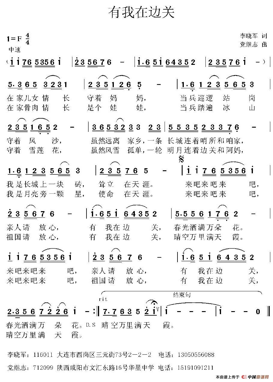 关于《有我在边关》曲谱的评论