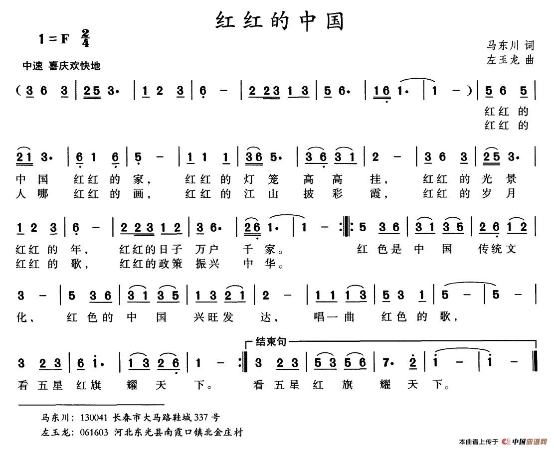 关于《红红的中国》曲谱的评论