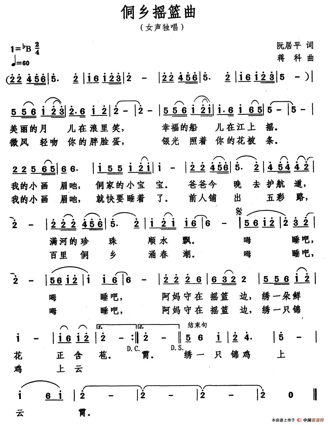 关于《侗乡摇篮曲》曲谱的评论