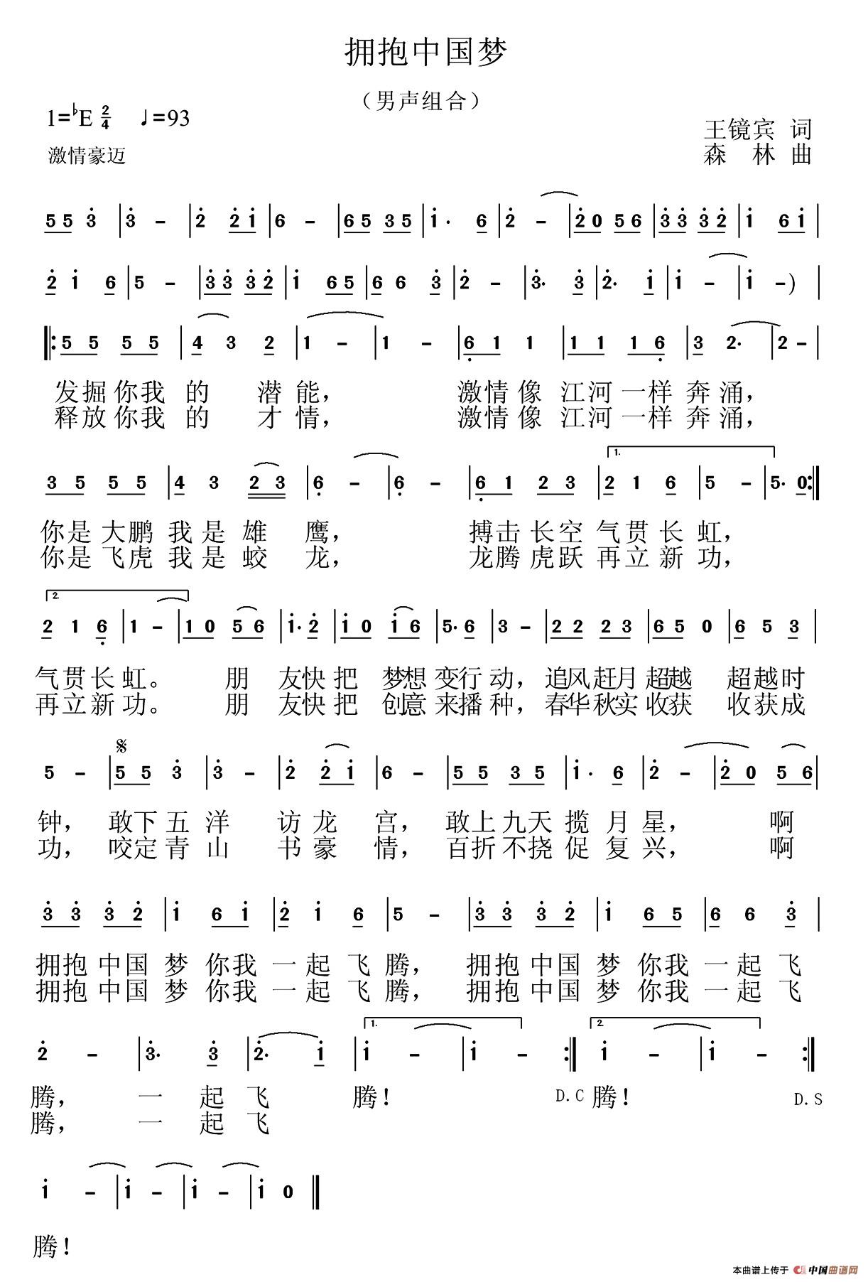 关于《拥抱中国梦》曲谱的评论