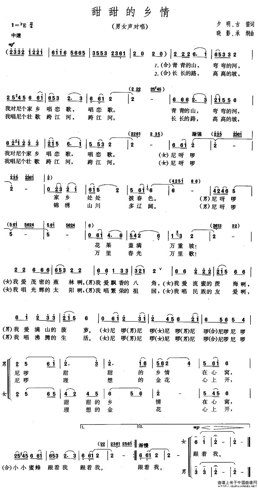 关于《甜甜的乡情》曲谱的评论