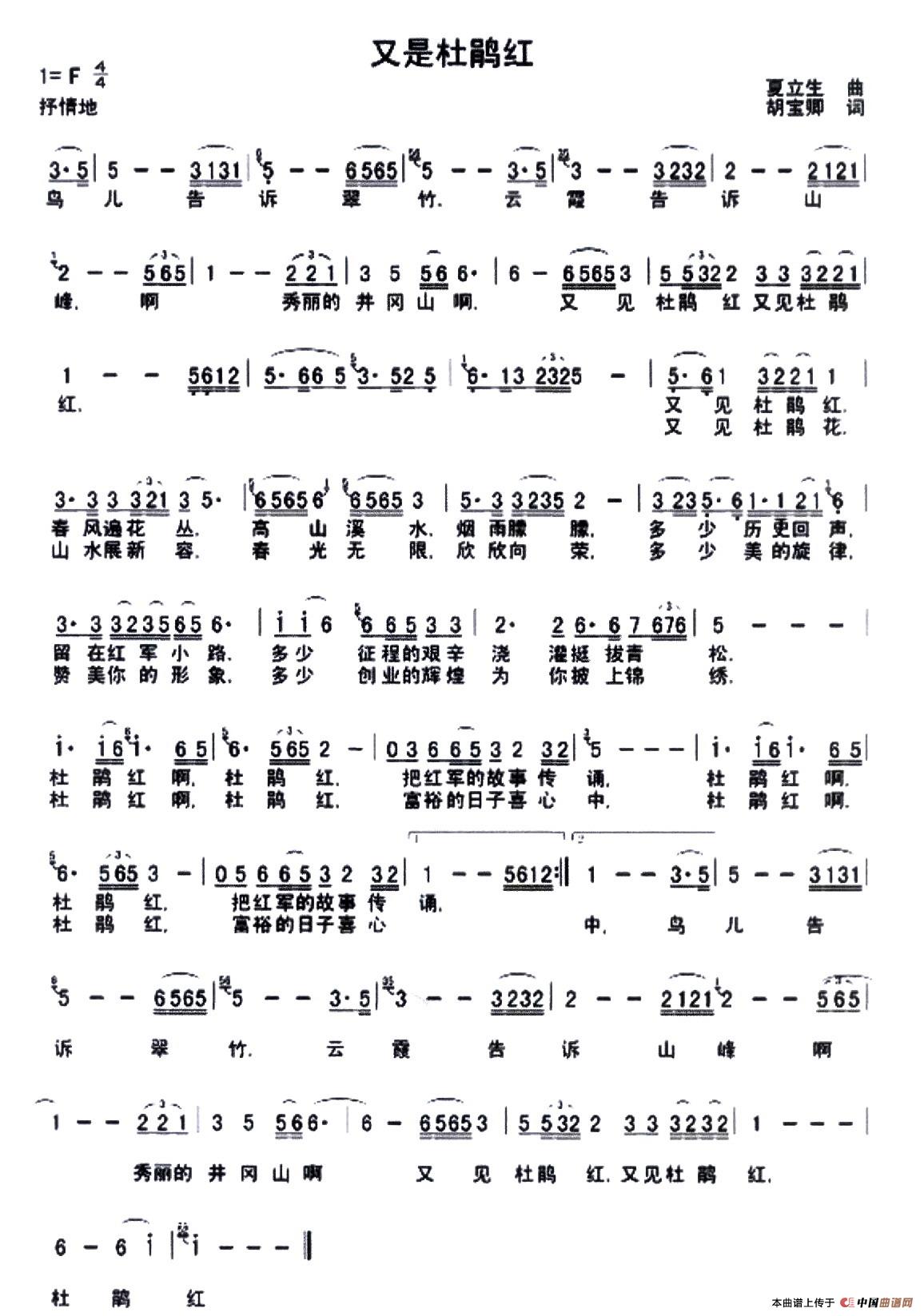 关于《又是杜鹃红》曲谱的评论