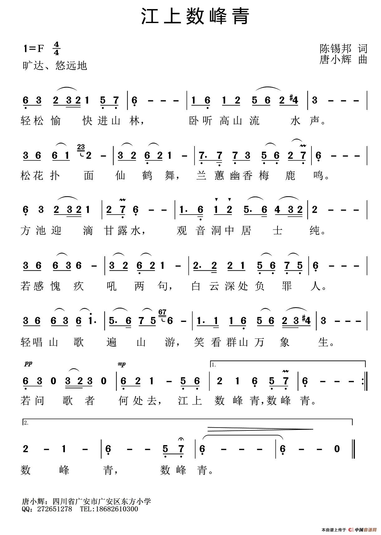 关于《江上数峰青》曲谱的评论