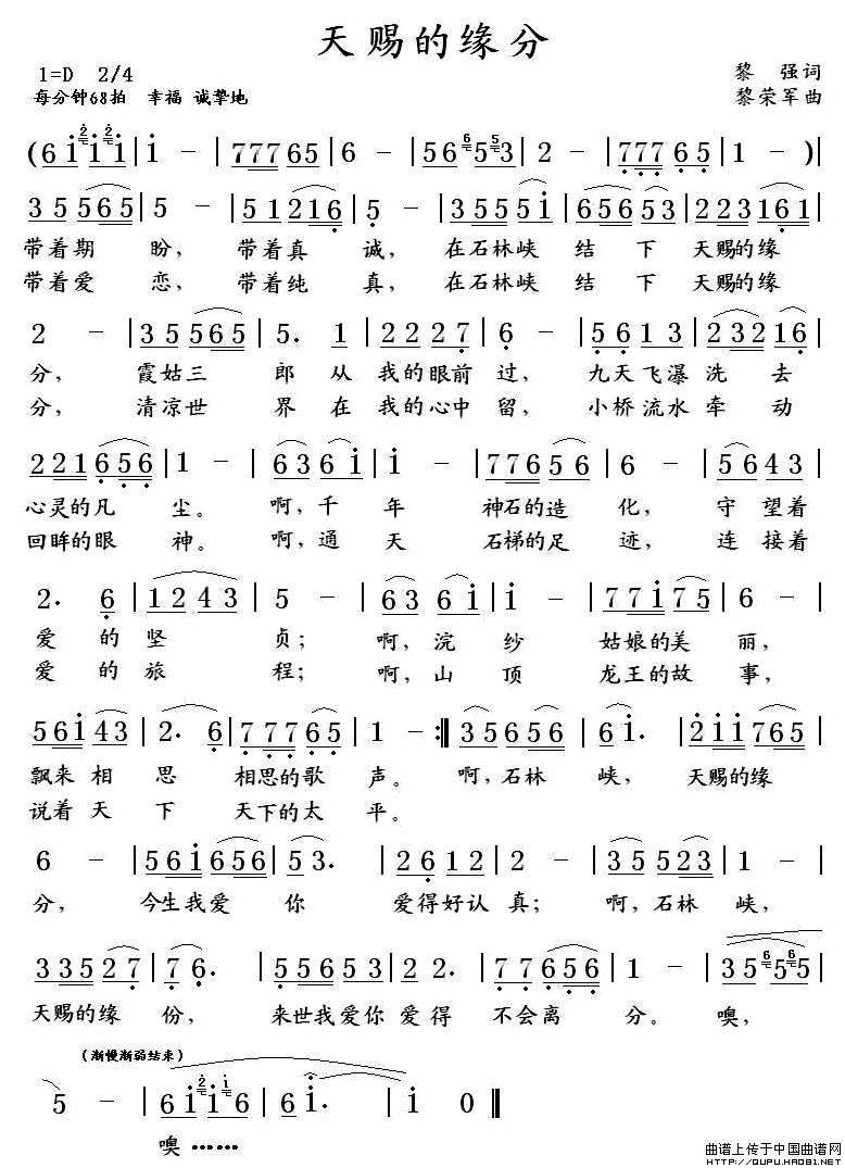 关于《天赐的缘份》曲谱的评论