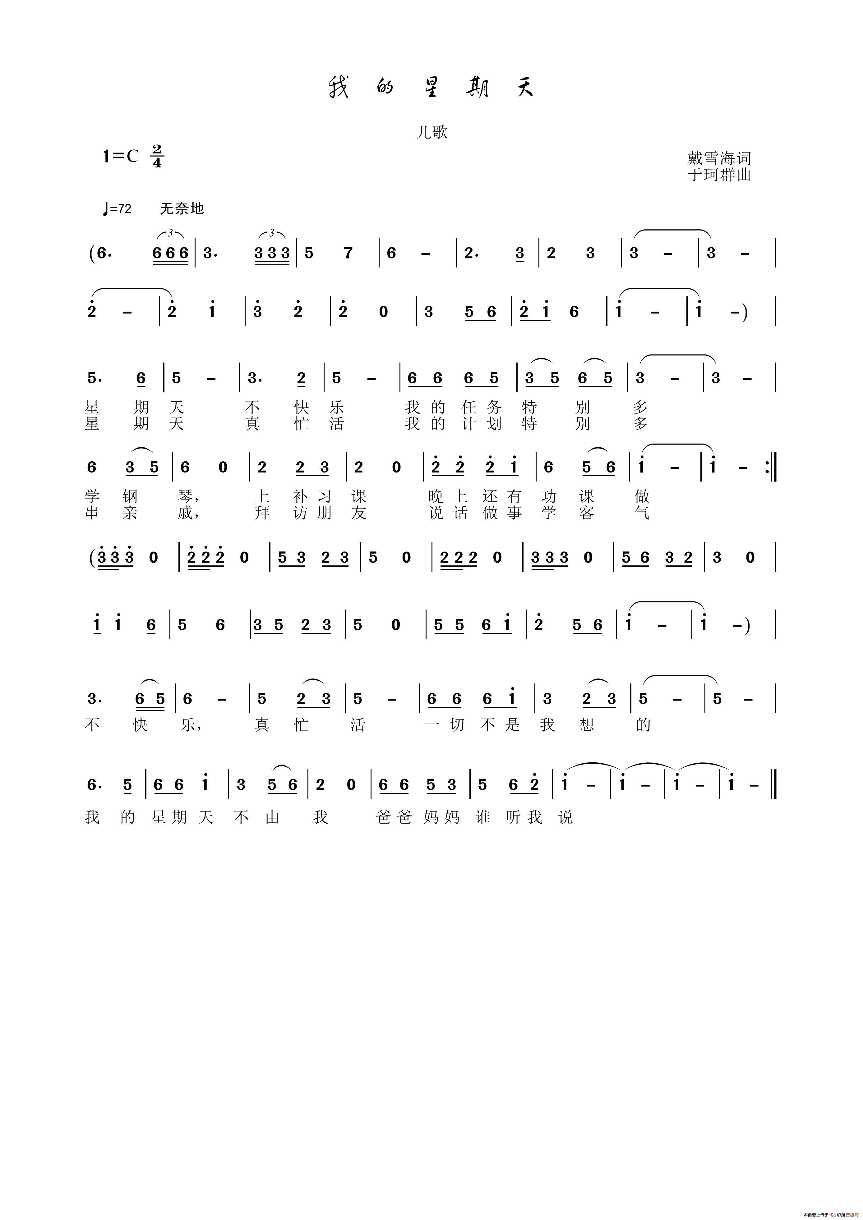关于《我的星期天》曲谱的评论