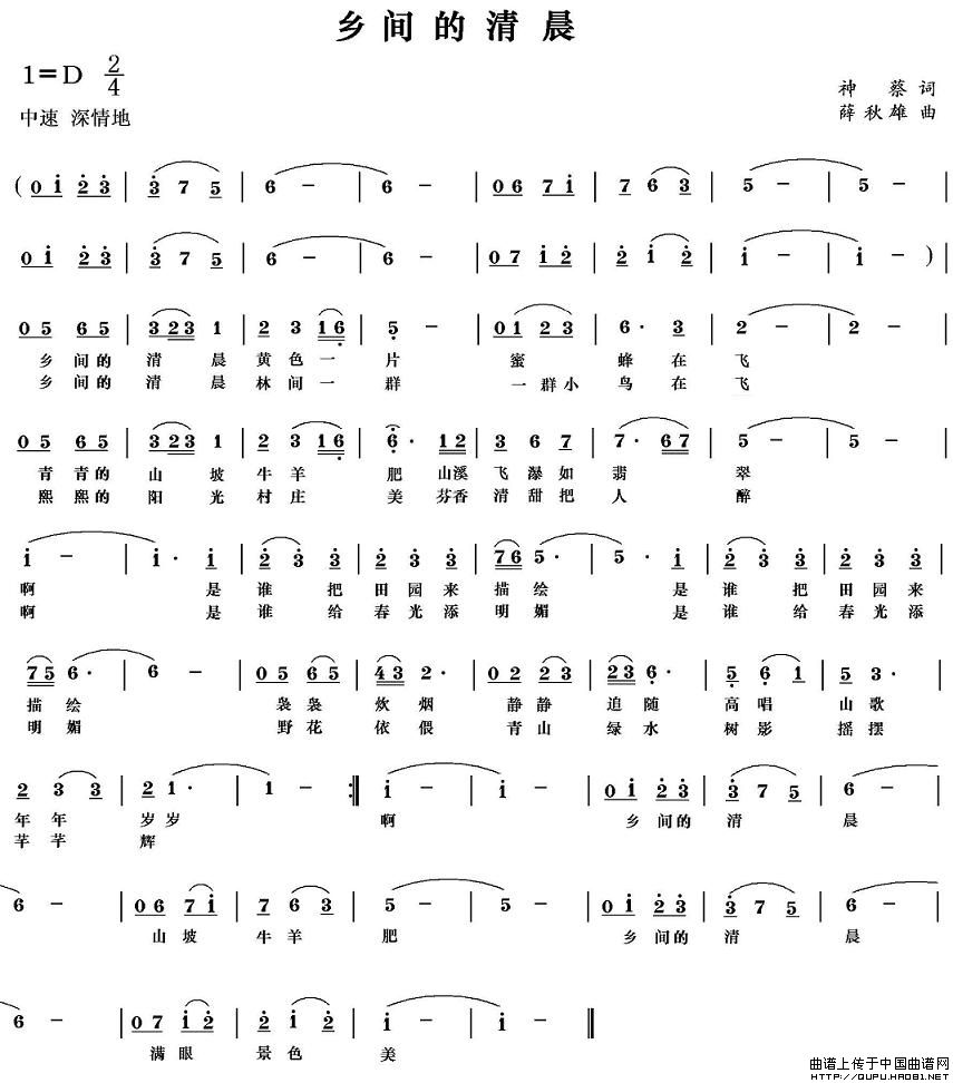 关于《乡间的清晨》曲谱的评论