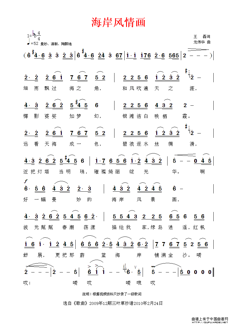 提示:在曲谱图片上单击右键,选择“图片另存为...”即可将曲谱保存到您的电脑中,打印时候可将图片插入到WORD中,调整合适大小打印即可。