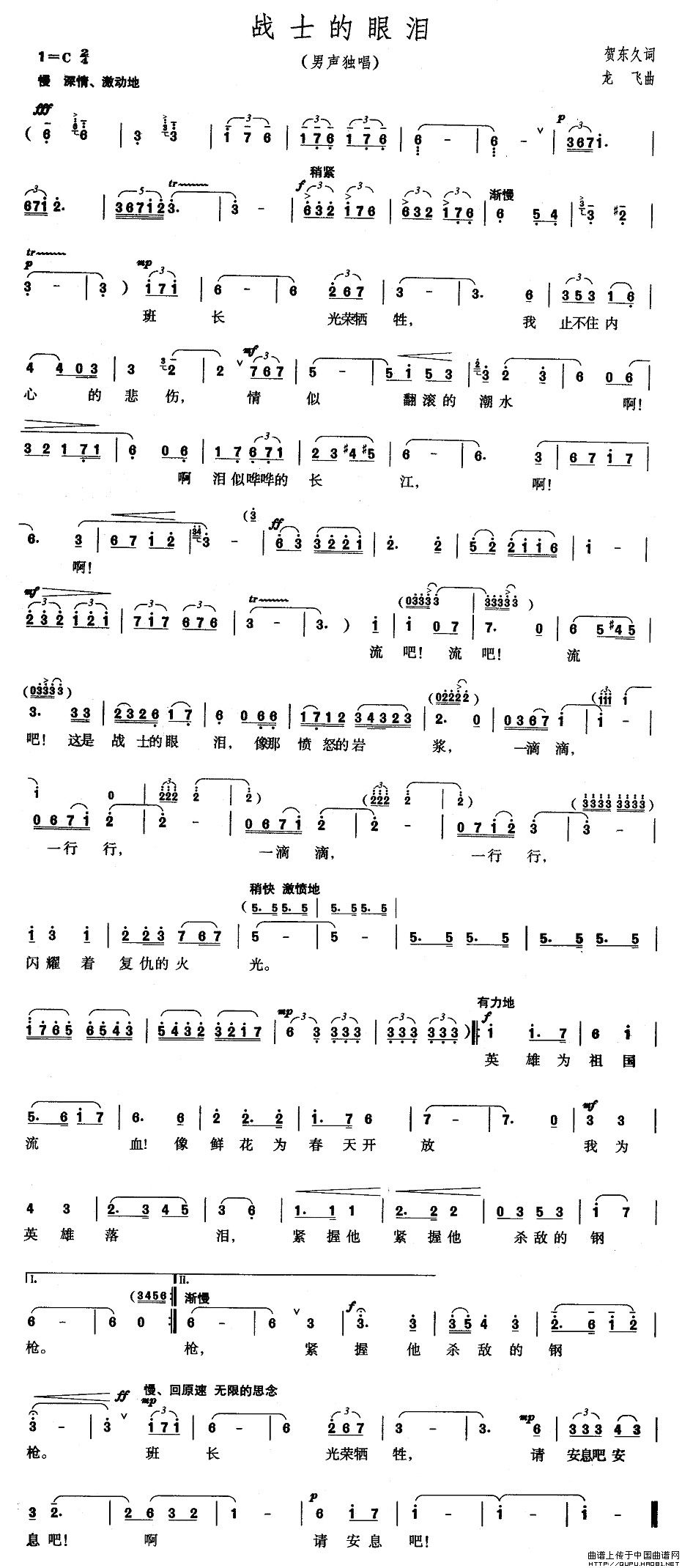 关于《战士的眼泪》曲谱的评论