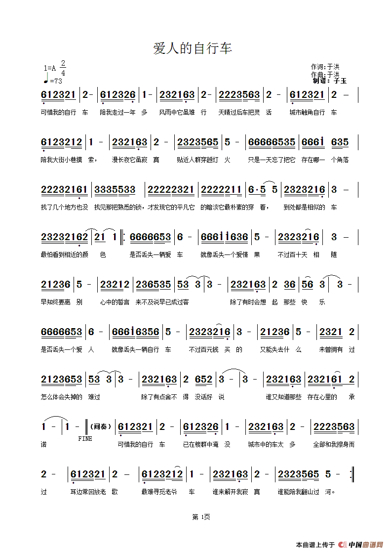 作词:于洪   作曲:于洪   来源:子玉制谱   上传:于洪   日期:2018-05-28   浏览次数: