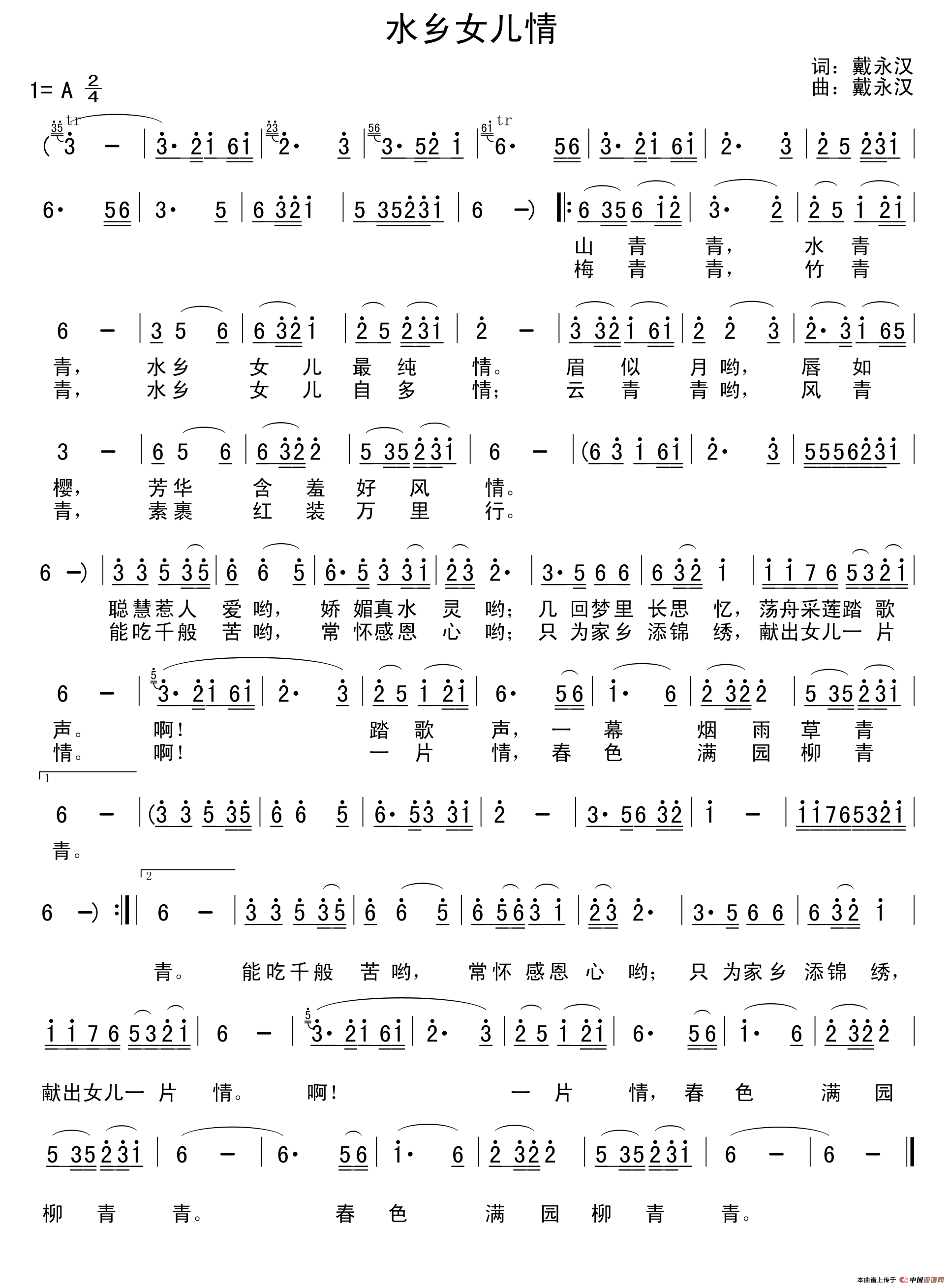 这是一首江南水乡女儿的优美歌曲。作者现征集不同版本的伴奏。