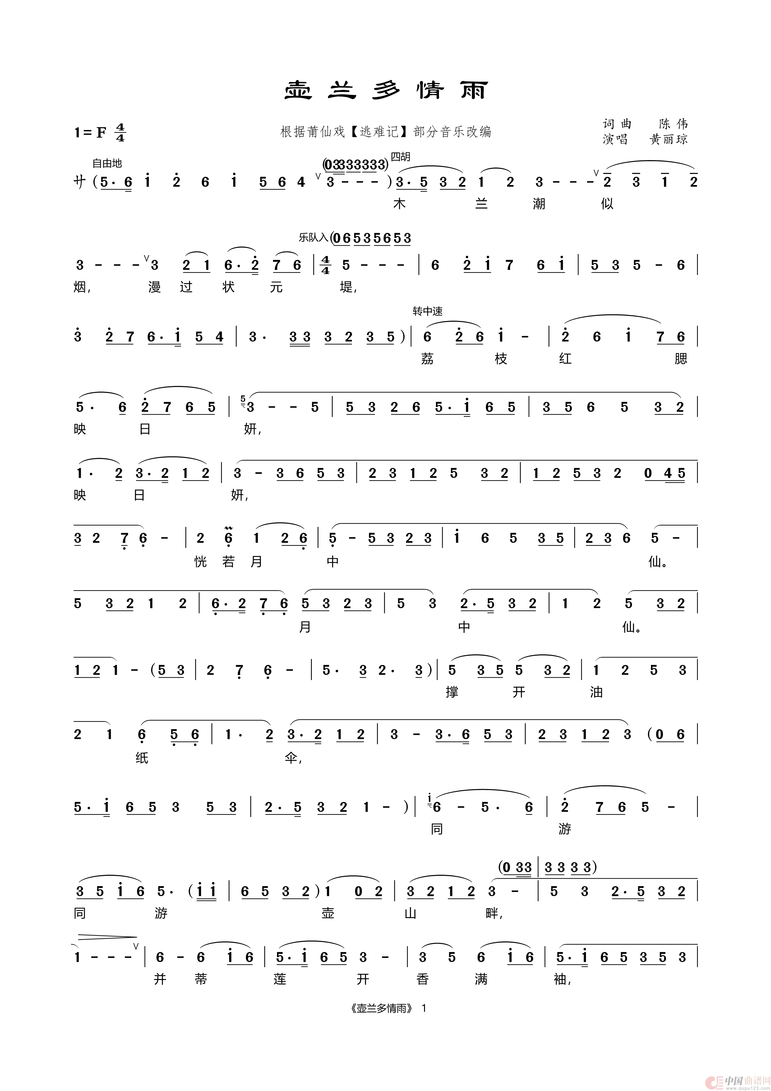 关于《壶兰多情雨》曲谱的评论