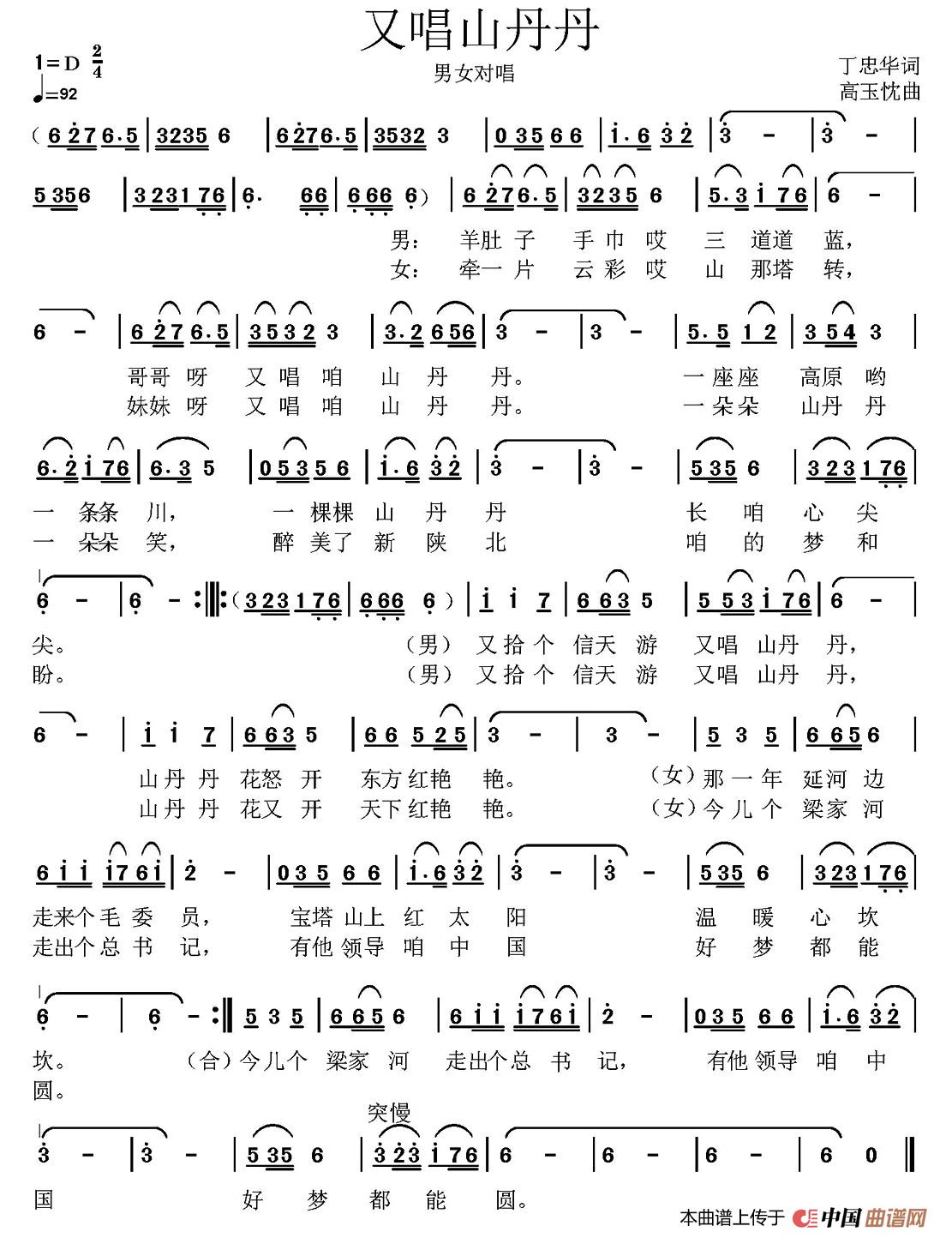 牵一片云彩哎山那塔转,妹妹呀又唱咱山丹丹-----