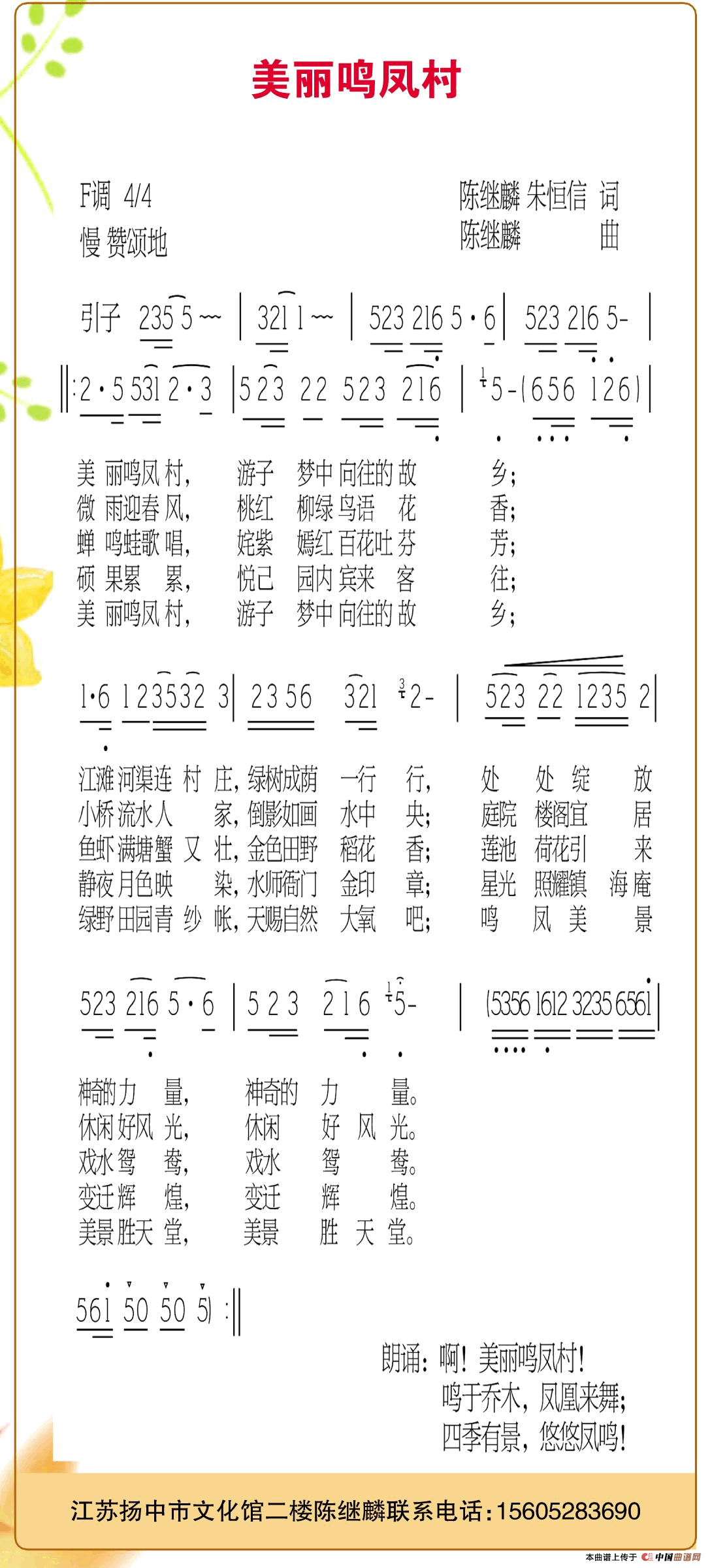 关于《美丽鸣凤村》曲谱的评论