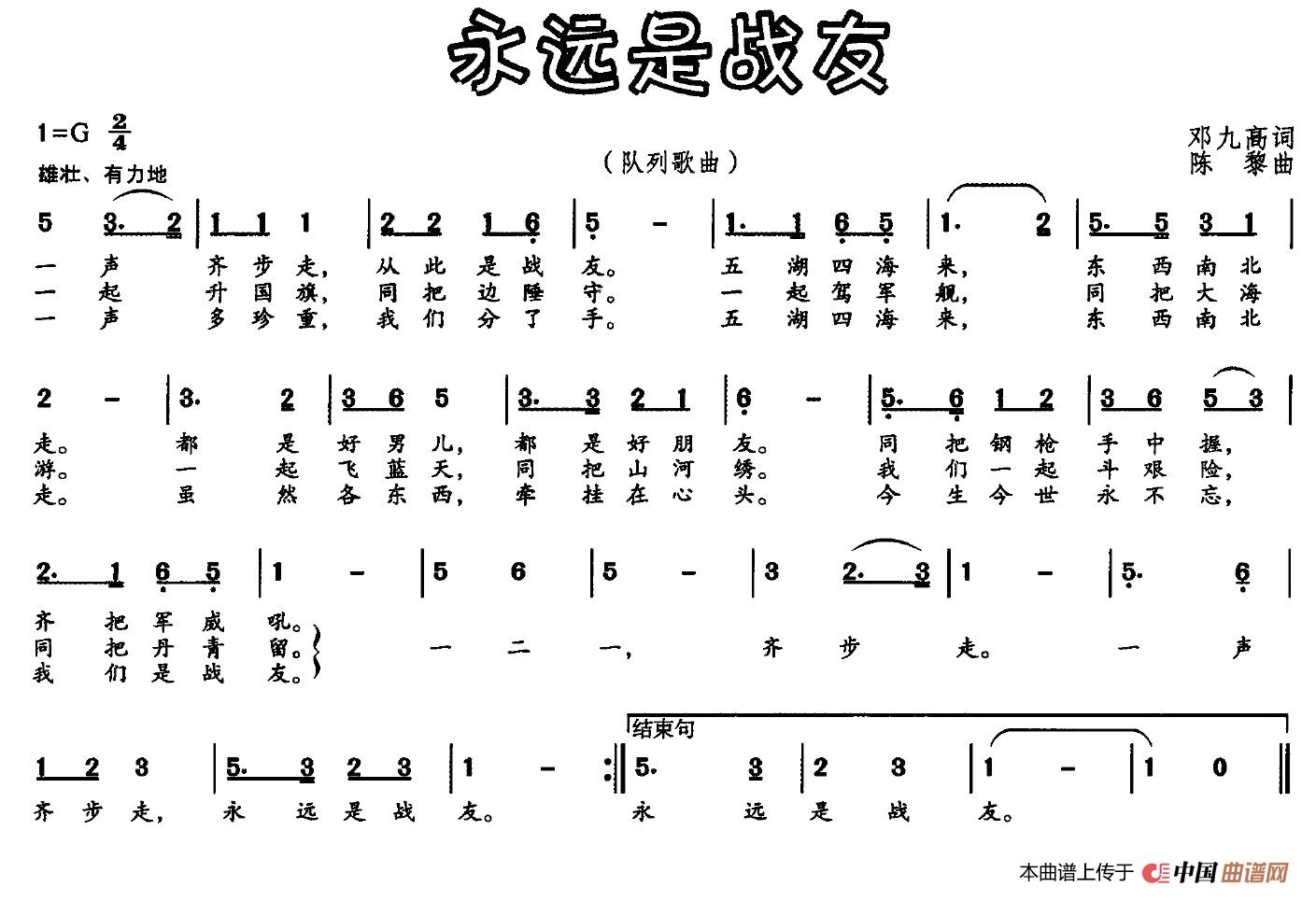 关于《永远是战友》曲谱的评论