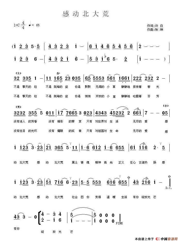关于《感动北大荒》曲谱的评论