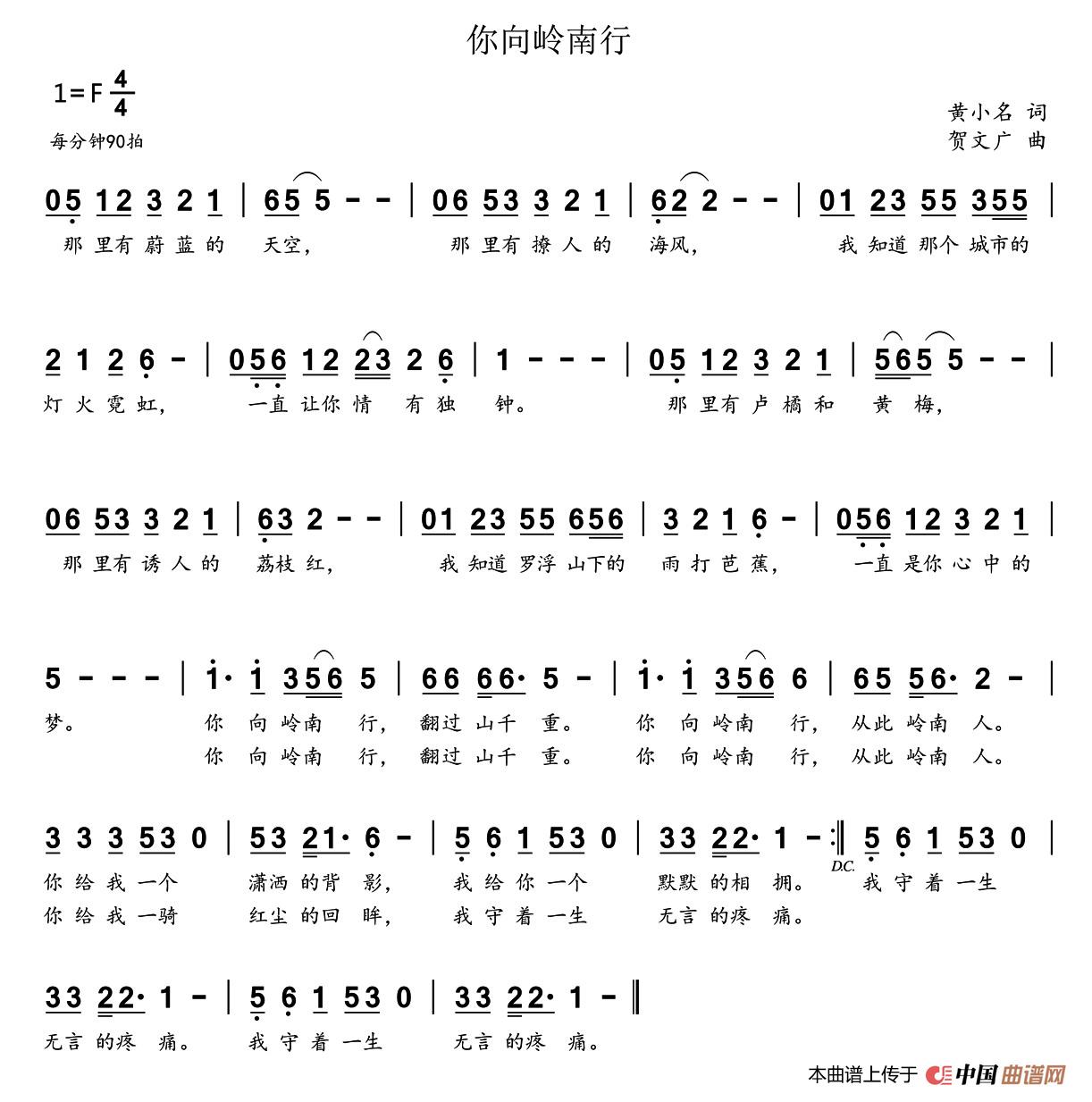 关于《你向岭南行》曲谱的评论