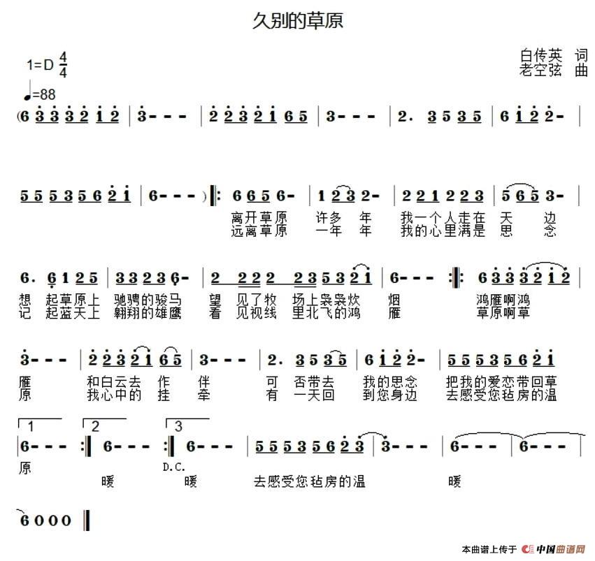 关于《久别的草原》曲谱的评论