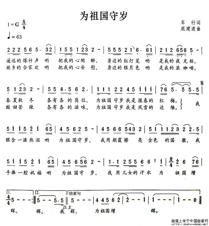 关于《为祖国守岁》曲谱的评论