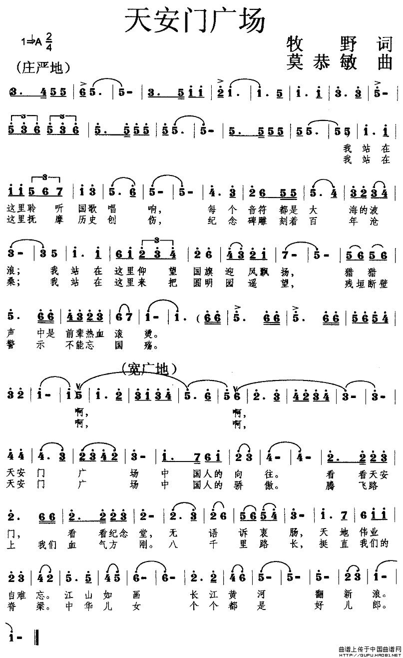 当前位置: 首页 民歌曲谱 五字歌名 天安门广场(牧野词 莫恭敏曲)