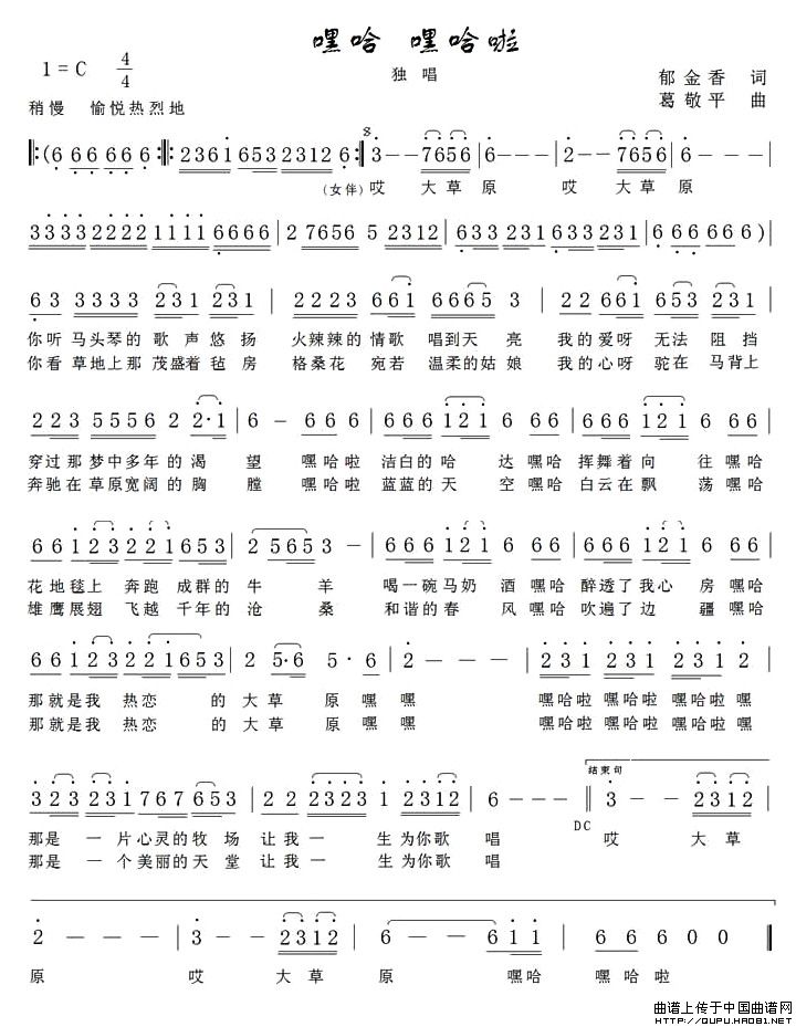 哎 大草原 大草原 嘿哈 嘿哈啦