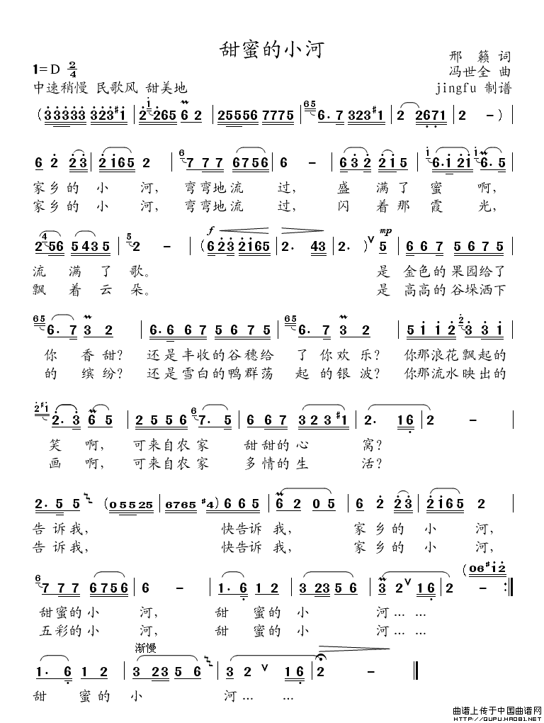 家乡的小河,弯弯地流过,盛满了蜜啊,流满了歌。